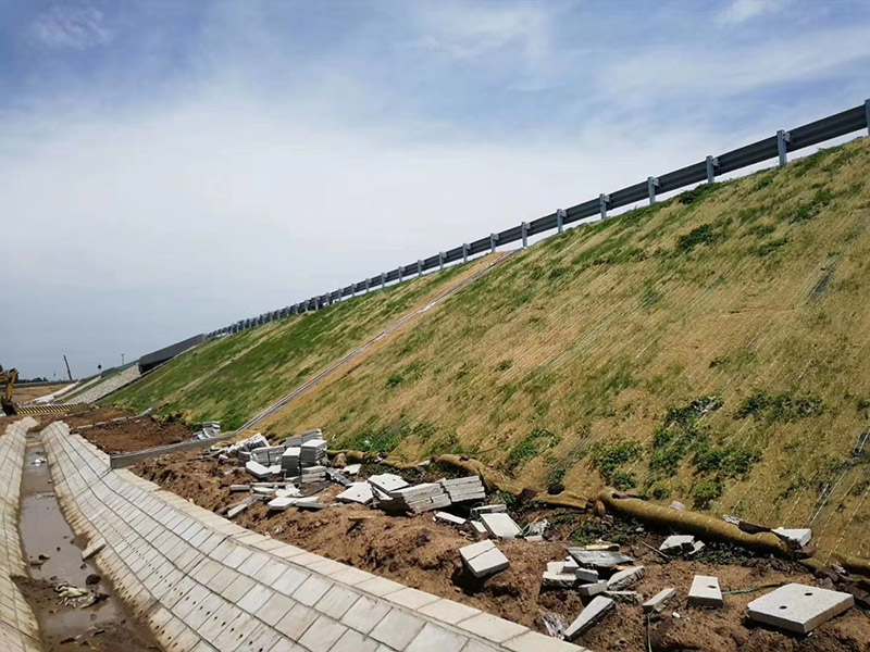 根据当地气候与土壤墒情人工浇水,保持土壤湿润天数不低于七天,以利于种子发芽,保证出芽率,出芽后根据土壤种类、墒情和季节一般每5—7天浇一次透水,浇5—6次即可成坪,植生毯绿化边坡和保持水土功能既能达到理想效果。