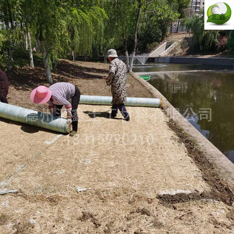 3、秸秆植生毯:以稻麦或小麦秸秆为主要原材料,在两层护网的定型下加工缝合而成,在缓和的边坡防护,乔木护根等方面有着广泛的应用。